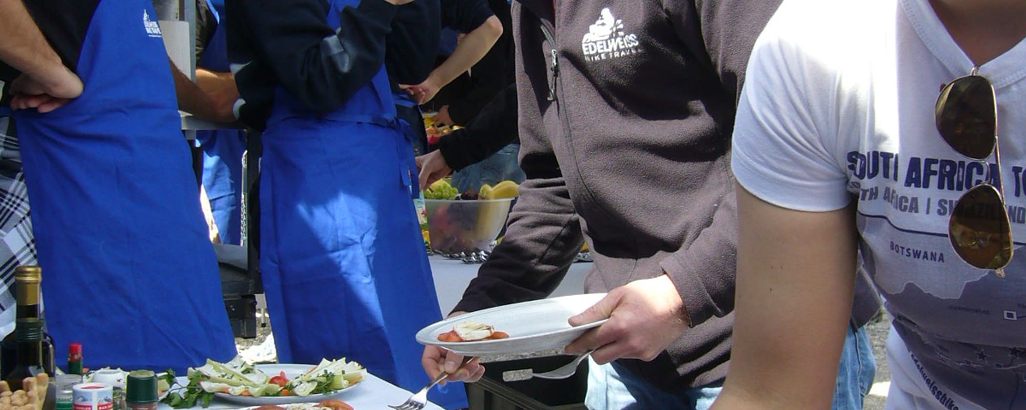 Like being a kid at 57, being one of the "young" new guys in the team is pretty cool. We disassembled brand new bikes, test-rode them through the alps and put them through the tasks of a rigorous braking test. We practice CPR (just in case one of those stunning alpine views along the way should take one's breath away). We took part in a competition of cullinary skills in preparing picknics for guests and we studied the EBT bible for running safe but exciting tours. We practiced whupping a BMW 1200 GS into the back of an Iveco van, and best of all...