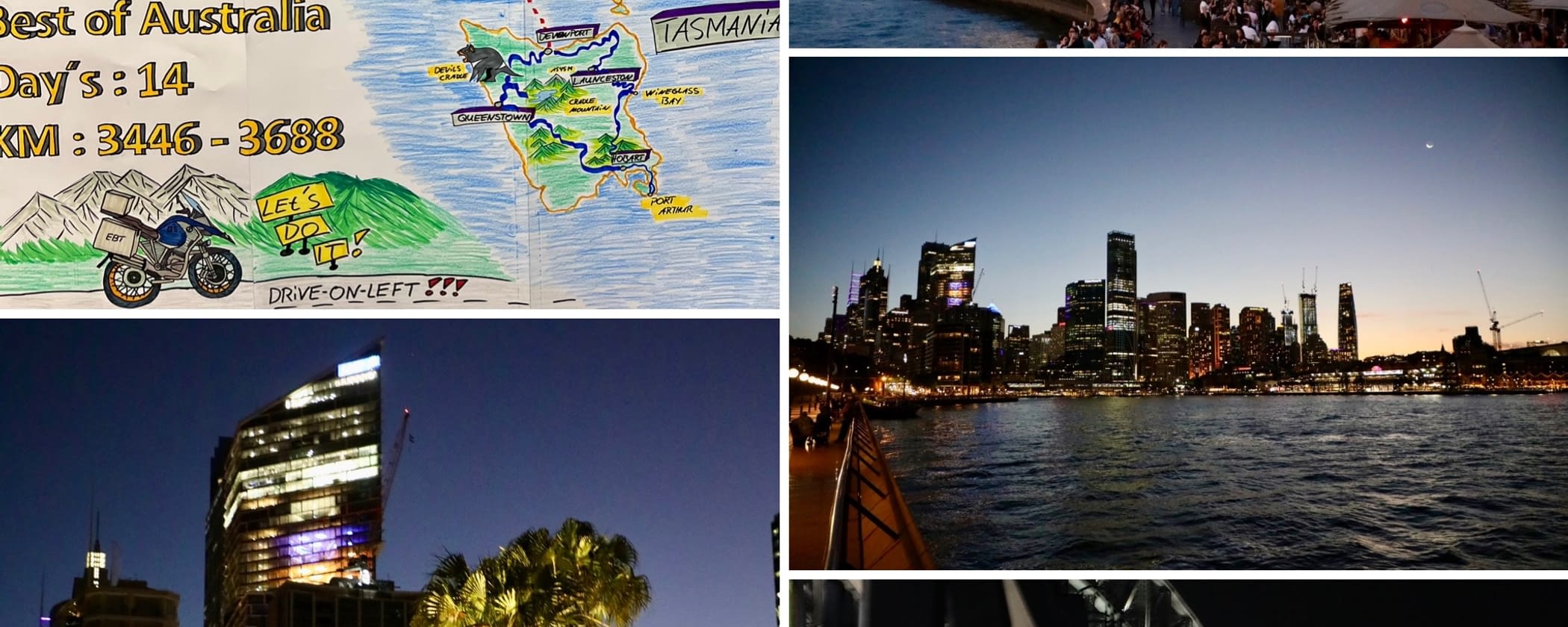 Day 5: Wangaratta to Melbourne/ Geelong This has been a fun run today - i can tell Theme of the day: Curves Curves Curves Welcome to day 5. Yesterday I wrote that is was a great ride because of the nature and the roads which we have been on. But I got to rethink it totally! This day beat the day from yesterday by far. After some kilometers out of Wangaratta the fun just started up to the Powers Lookout. And after this it just went on and on and on. This day was like the best rollercoaster I have been on. On top the scenery where we went through on roads like the Eildon Jamieson Road. Which made us smile for over 60 kilometers. The final highlight was for sure the road towards Yarra Glen. All in one this day is made for rider which loves to ride curves. Now we are on the Ferry to Devonport/ Tasmania where we will start our day 6 verry early because the Ferry arrives at 5:30. Well a other day in paradise comes to an end and now we trie to get along whith the waves and the movement of the Ferry. See you tomorrow Michaela and Axel when you realize that you are in the wrong vehicle