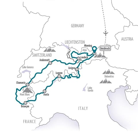 Von Mieming aus dauert es nur wenige Minuten um die ersten Serpentinen zu erreichen. So erhältst du schon eine Vorstellung davon, was dich in Kürze erwarten wird. Tolle Ausblicke ziehen dich in ihren Bann, wenn du dich Kurve für Kurve herantastest und immer tiefer in die Alpen vordringst. In der Schweiz sind die Berge das ganze Jahr über an den höhergelegenen Gipfeln schneebedeckt. Auf dem Weg nach Frankreich sammelst du Pässe wie andere Briefmarken.
