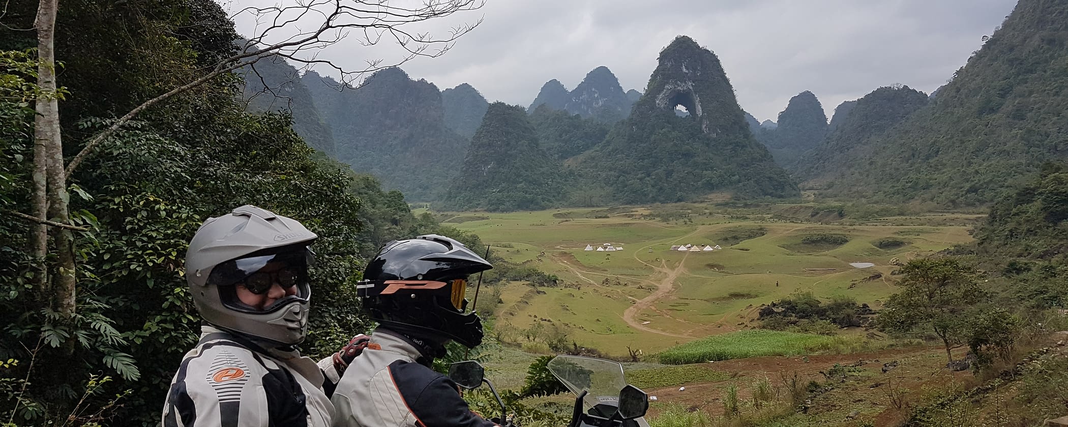Quite a relaxed riding day! In the morning we visited the famous and beautiful Ban Gioc Waterfall. Afterwards we were heading south along the Chinese border on curvey roads with good pavement. A special stop at a temple made the day complete.