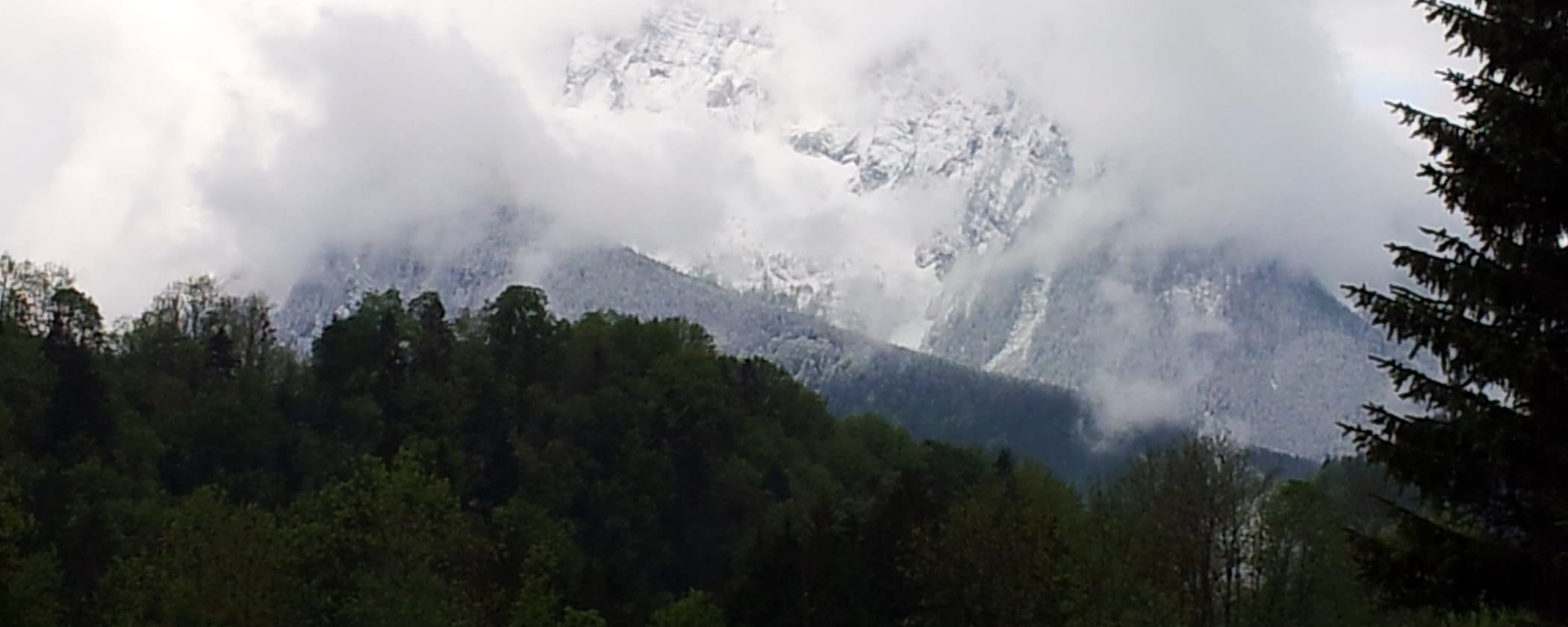 Morning has broken... I woke with a lurking question in my mind that's been keeping me from sleep: where is that goddamned mountain? That famous peak? That mamouth of a folklore ledgend which has fascinated travelers over eons of time? "Der Watzmann" 2713 meters high must be seeable nearby. Nearly every third lokality has claimed its namesake, named a drink or meal after it, painted it on the wall or posted fotos of some notorious person who has been here and posed with it in the background. And here I am... riding the whole day long around it and don't know if I have seen it or not, peeking out of some cloud that was drenching me with rain, laughing at me with it's magestic aloofness while the weather gods were pelting me with hail and snow.