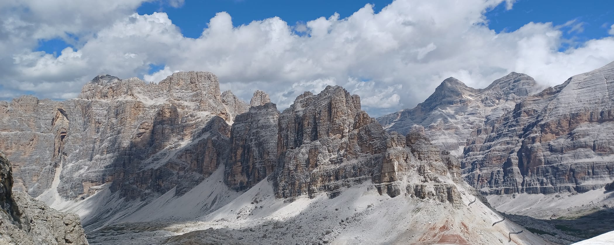 We had a great first day of riding yesterday and the Grossglockner High Alpine Road was already a real highlight of this tour. But today should be even better, because we're off to the Italian Dolomites, the motorcycling paradise in the Alps par excellence. We leave the East Tyrolean capital of Lienz in the morning and make our way directly towards Italy. We stop briefly at the border, of course, because a photo at the border crossing is a must. We then continue on to our first coffee stop on Italian soil at Lago di Misurina and get a first impression of the impressive landscape and begin to understand why it is protected as a UNESCO World Heritage Site. We then continue over the Passo di Giau towards the Passo di Falzarego, where another highlight awaits us, the gondola ride up to the Lagazuoi at more than 9000 feet above sea level, where we enjoy our lunch break with probably the best view of all time. In the afternoon, we continue over a few more passes to our destination for today, the beautiful city of Bolzano, where we will spend two nights.