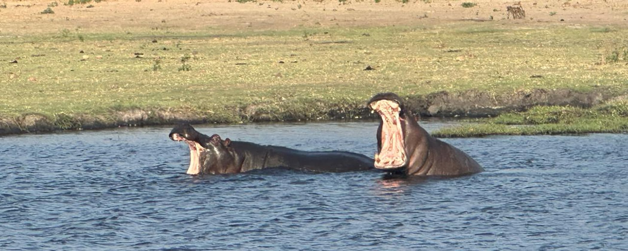The tour kicks off with an early breakfast start in the hotel and then the group heads down to take a scenic walk along the walkways to view the impressive Victoria Falls. There is a lot of spray this morning which keeps us cool as it's already starting to warm up. We make our way around admiring the views - it's great!!! But we cannot tarry - our bus transfer to Kasane departs at 11:00 so we have to be back for that. The border crossing into Botswana goes remarkably smoothly and we arrive at the Chobe Marina Lodge for lunch. Then we are off again - this time on a boat safari around the Chobe National Park. Today there are Elephants, Hippos, Crocodiles, Buffalo and Marabou Storks in abundance. We watch the sun set then are back to the Lodge for dinner. Most people are taking an early night - tomorrow morning we have a game drive starting at 06:00!!!!