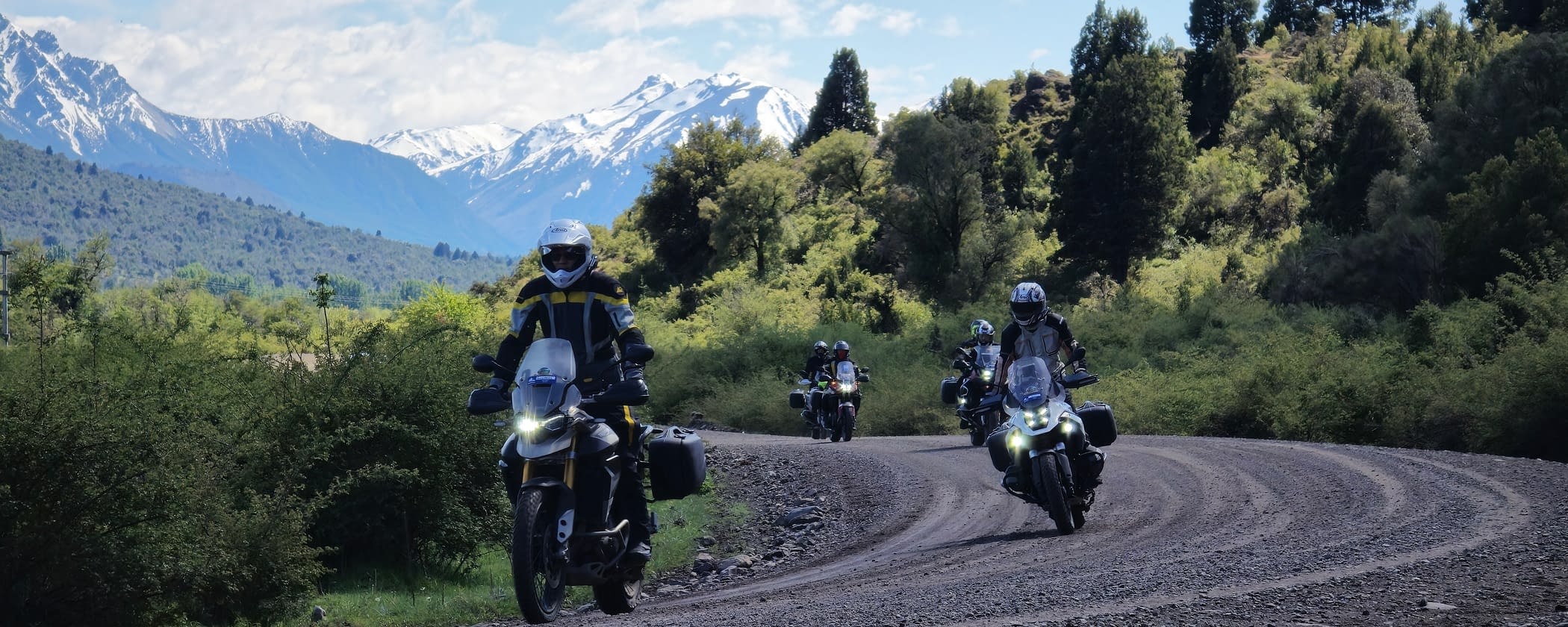 Riding day number two begins and once again we seem to be lucky with the weather. It's still a bit chilly, but there's no rain in sight. And even if this day looks very short on paper, it will still have a lot to offer. Because yesterday was just a foretaste, today the adventure really begins. We leave Pucon and take the Mamuil Malal Pass towards the Argentinian border. The road is winding and the landscape breathtaking, with araucarias everywhere along the way and snow-capped mountains on the horizon. The border crossing goes quickly and without any problems, so welcome to Argentina. And welcome to gravel. The Mamuil Malal Pass is not paved on the Argentinian side. After the first few kilometers of gravel we reach Junin where we have lunch and quickly realize that Chile and Argentina are very different. Of course we could continue on the famous Routa 40, but why should we? There is an almost deserted and interesting gravel road leading through the mountains and along Lago Lolog. And so we spend the afternoon doing what we came for. Enjoying dirt roads and impressive landscapes. Our destination today is San Martin de los Andes, a small town and at the same time the tourist epicenter of the region. It is somewhat reminiscent of ski resorts in Europe or Canada. What a day.