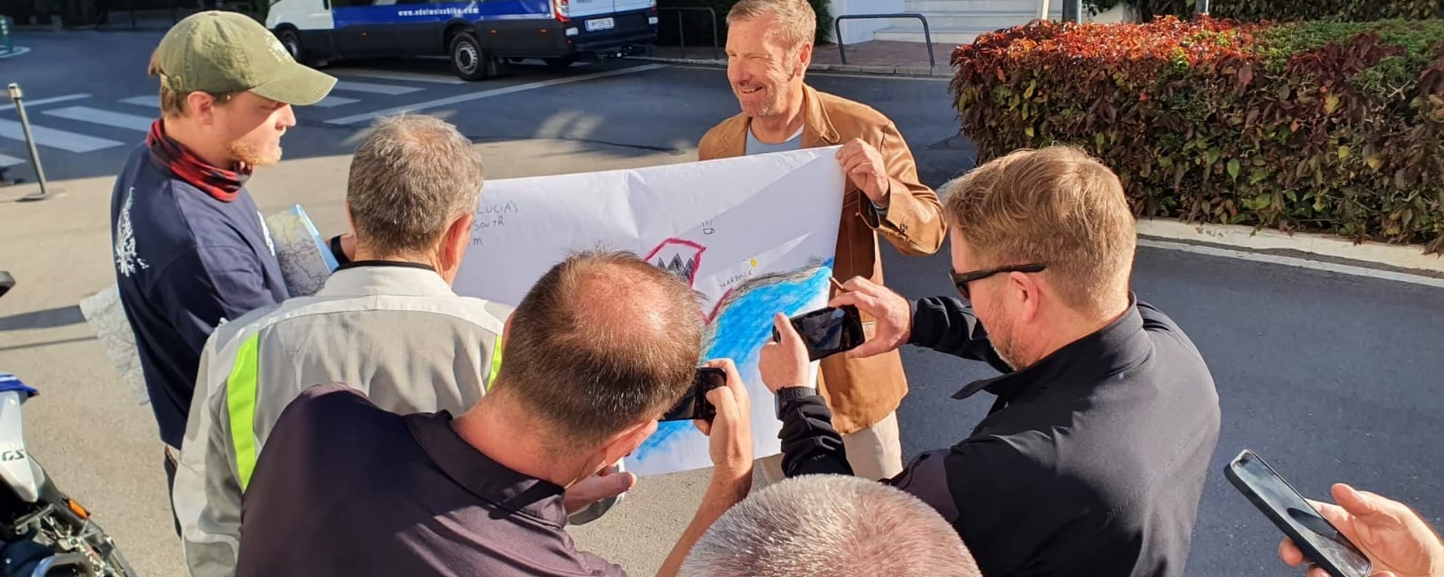 Lars left the night before to fly to Marakech this morning to get everything arranged for the upcoming week. So it had to be one of the group taking the lead and so Karel took the challenge to guide the group Granada and later on along the twisty roads of the Montes de Malaga. After reaching the waterfront at Bahia del Torre del Mar they took a break for a lunch at one of the beach restaurants. Markus, driving the van today, went ahead to arrange everything for a smooth change from motorcycling to the lift to the airport. Have a good flight to Morocco!