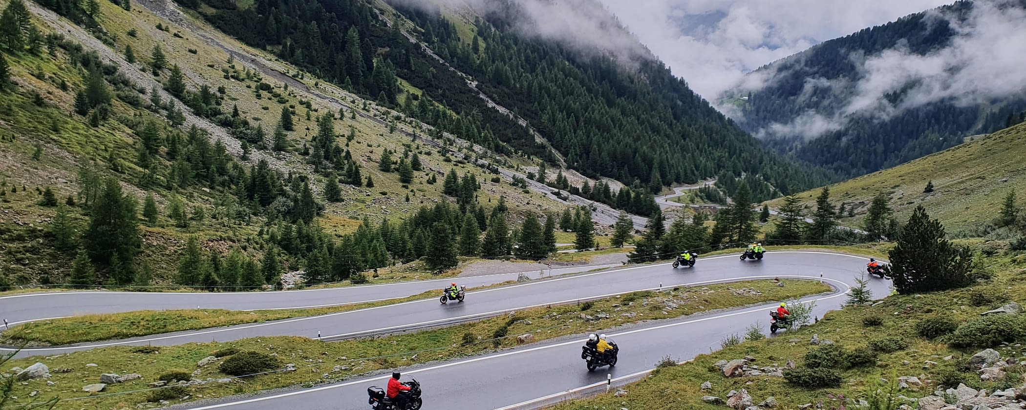 About one third of the group arrived earlier to enjoy and explore the area around Seefeld. Today, on the official starting day one after the other of the rest of the group shows up at the hotel, looking forward to a week full of adventures. Those allready here start a busy day allready in the morning. Harald, one of the tourguides intruduces five riders to the Alps Prep Course to make them feeling more comfortable on alpine roads. After a classroom session he takes them out for some practice in a parking lot and afterwards on to some mountainroads to get used to this kind of riding. Daniel, one of our tourguide colleagues comes in for the guided city tour with one of the guests. And Markus is doing the preration for a smooth tourstart. Finally we all meet at 5pm and the show beginns!