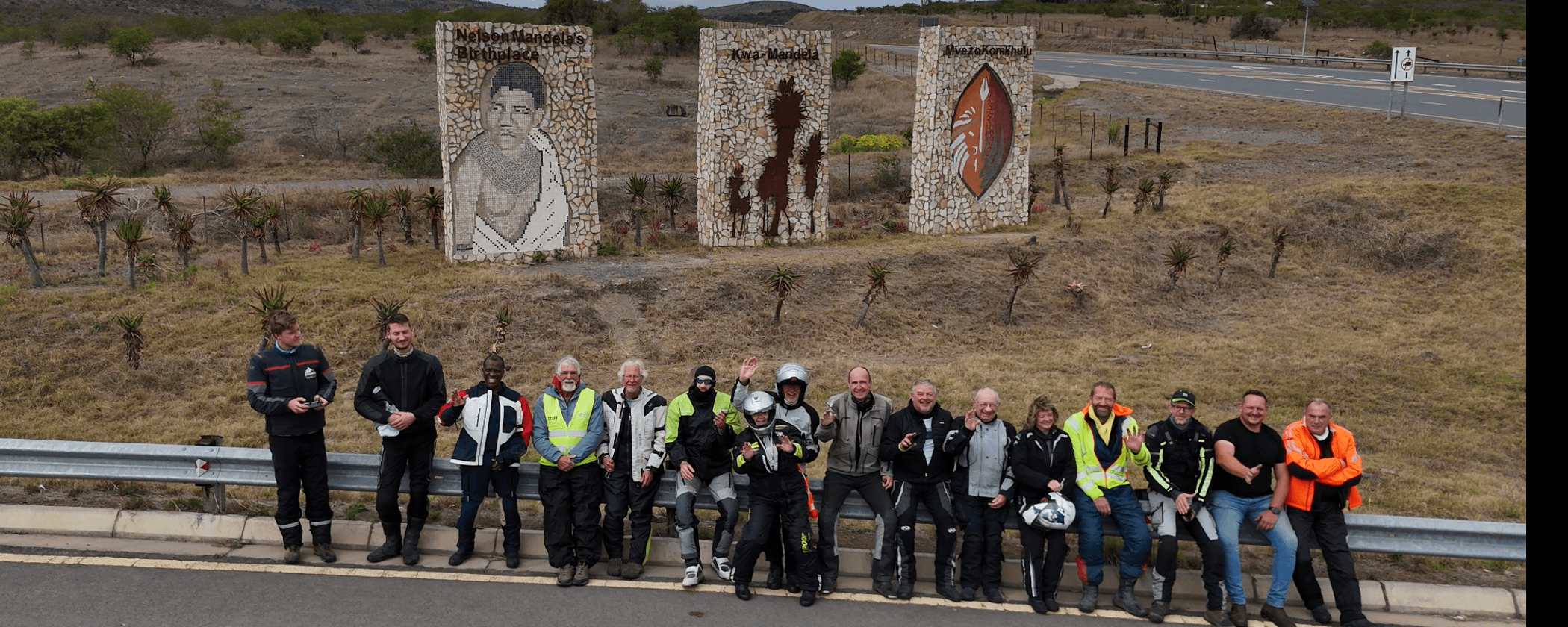 Today was a shorter day in distance, but that doesn’t mean there wasn’t a lot for us to see. We took off from Mthatha and quickly said goodbye to the city. We then continued our ride through Transkei. Our first stop was at a monument of the birthplace of Nelson Mandela, where we took some pictures. After this, we had a short spell of rain, but nothing we couldn’t handle, after the practice with rain yesterday. From here we went on to the former border of Transkei where we had a short coffee break. From here on, the road got a little more twisty, so we had a chance to enjoy the ride until we reached the coast. Here we had lunch at a very nice beach club, where we could enjoy some sunshine and the view of the waves crashing into the beach. The last part of the ride was parallel to the coast, towards our hotel. The closer we got, the more the sky opened up, and the sun started to peek through. Once we got to the hotel, the sun had really come out, so it was a perfect opportunity for us to have a Boot Beer at the beach, overlooking the ocean and chatting about how the trip has been so far. I am sure some people will now be putting on their swimsuits and taking the chance to dip into the ocean. After our swimming fun, we will head into the restaurant for dinner. And I think we will do some Christmas Caroling afterwards, as the hotel has already set up the Christmas tree..