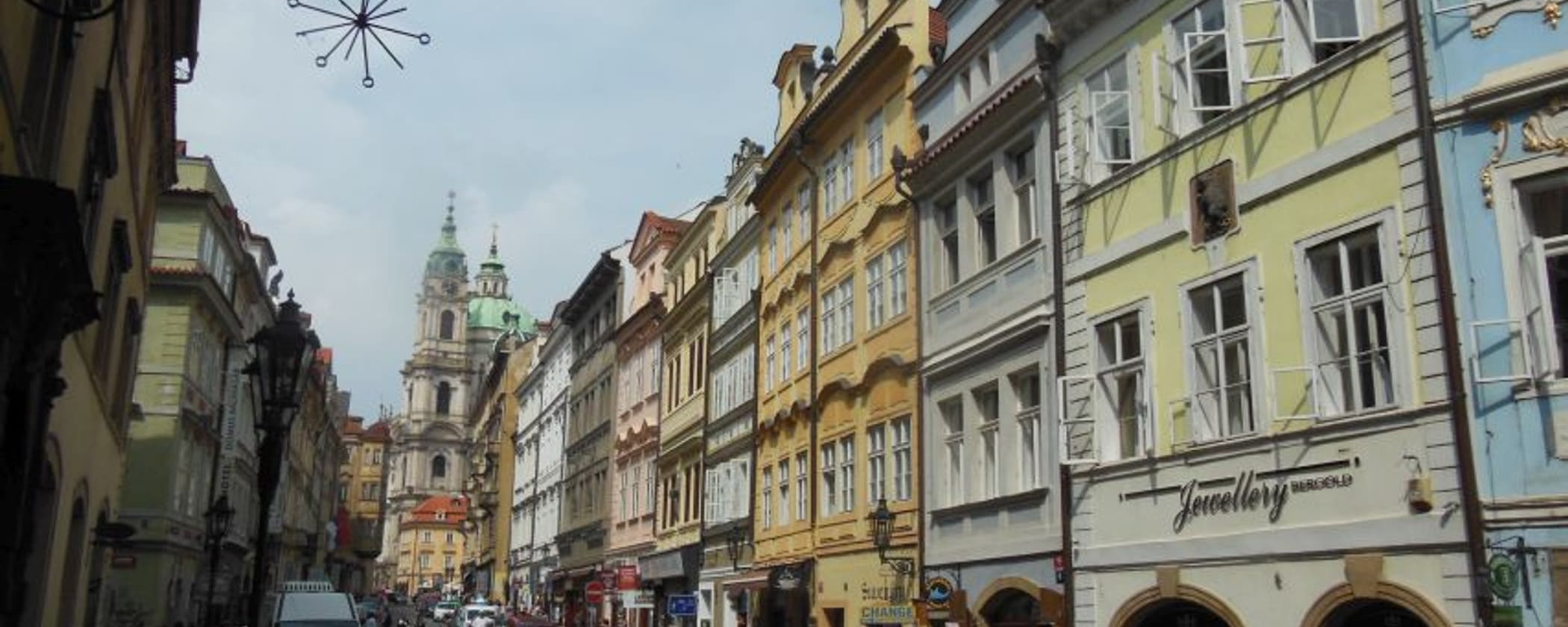 Beautifully restored houses line the cobblestoned streets of Old Prague