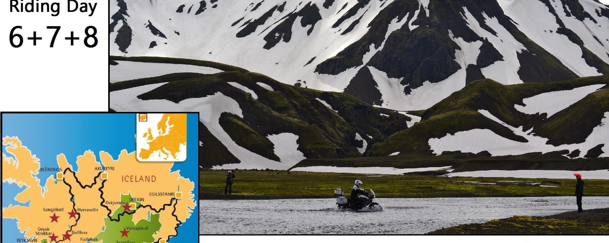 Riding Day 8 - Today was the day! The famous Landmannalaugar was our goal to reach for lunch time! Fantastic off-road riding in a landscape looking like another planet with challenging water crossings all day long! The natural hot pot and a snack bought in an old bus haven't been the only reward after lots of work on the bikes. No the riding itself in this incredible and colourful mountains was the best reward you could get! Have a look at our pictures to see the riders performing art on motorcycles in Iceland!