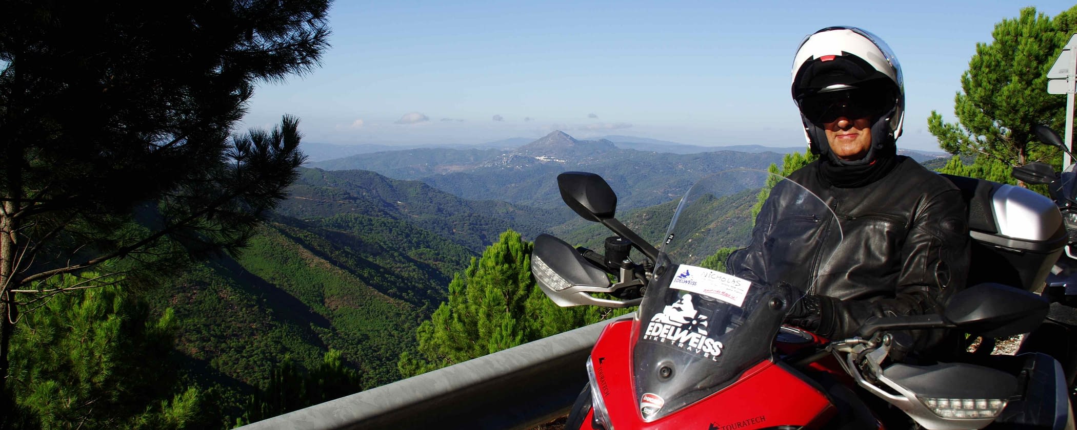 After visiting the palaces and the beautiful gardens we took again the smooth ride down to the hotel and after a quick lunch we drove the bikes up to the Sierra Nevada. Unfortunate the weather gods were not cooperating very much today, so the view on the top was pretty much covered in mist, but a little lower from the top it was clear enough to enjoy beautiful views. Rdiding around Grenada we followed our way in western direction through the olive yards to Antequera.