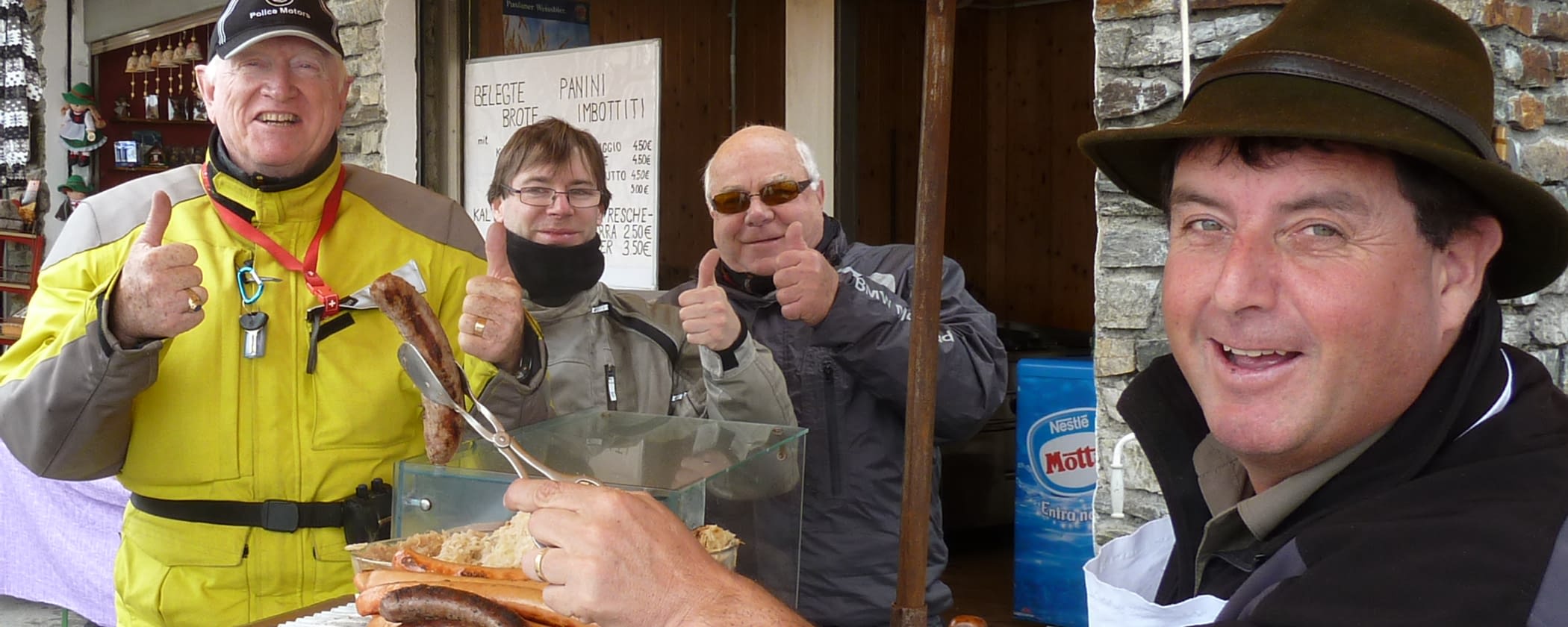 The last days were extended experience of the past ones: more switchbacks, more outstanding scenery, more good riding. Heading for Passo Stelvio we hit rain, fog, low temperatures. But everyone made it to the top and got awarded with Bruno's famous sausages.