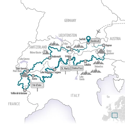Riding the world’s most amazing roads in the highest and most spectacular part of the Alps.