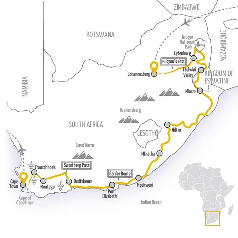 We will immerse ourselves in Zulu culture and the cultivation of wine grapes, which are pressed into some of the world‘s finest wines in the Cape Town hinterland. The rest day in Franschhoek is perfect for oenological exploration!